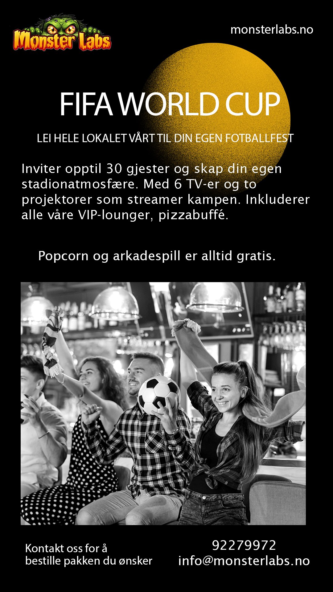våre merker Et komplett underholdningspakke. Her eller der!arrow_forwardUtforsk våre tilbudMonster Labs Events Råsokveien 19, 1900 Fetsund +47 92279972Vi ordner gjerne med omvisning av lokalet til interesserte! nextMonster Labs salonger, aktivitets og møterom er tilgjengelige for arrangementer, fester og sammenkomster for opptil 30 personer.